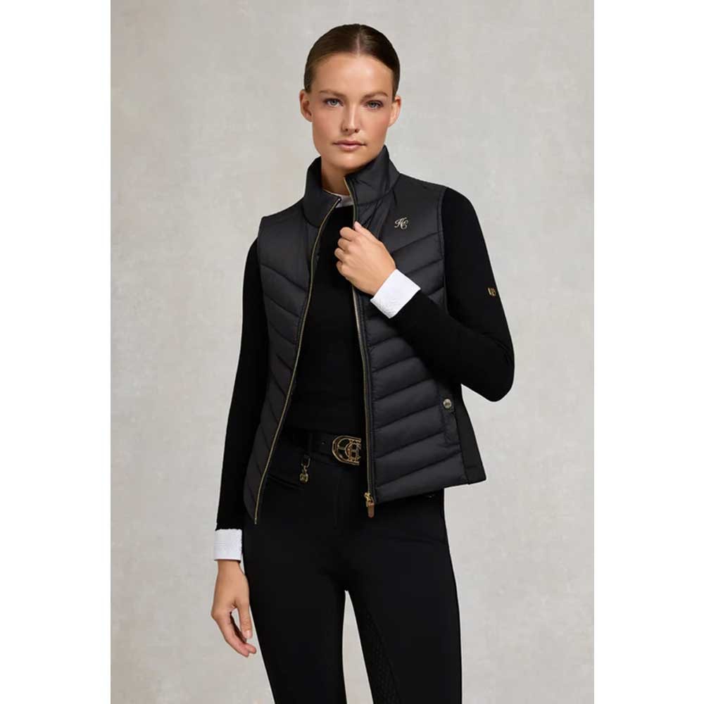 Elevate your equestrian wardrobe with the Holland Cooper Lightweight Gilet. This refined piece offers exceptional warmth without compromising on movement. The innovative design features luxurious scuba jersey panels, ensuring unrestricted flexibility during your ride. Sophisticated welt pockets with secure snap closures add both functionality and refinement, while our distinguished HC embroidery adorns both chest and back. Perfect for layering, this essential gilet seamlessly combines technical performance with timeless elegance.
